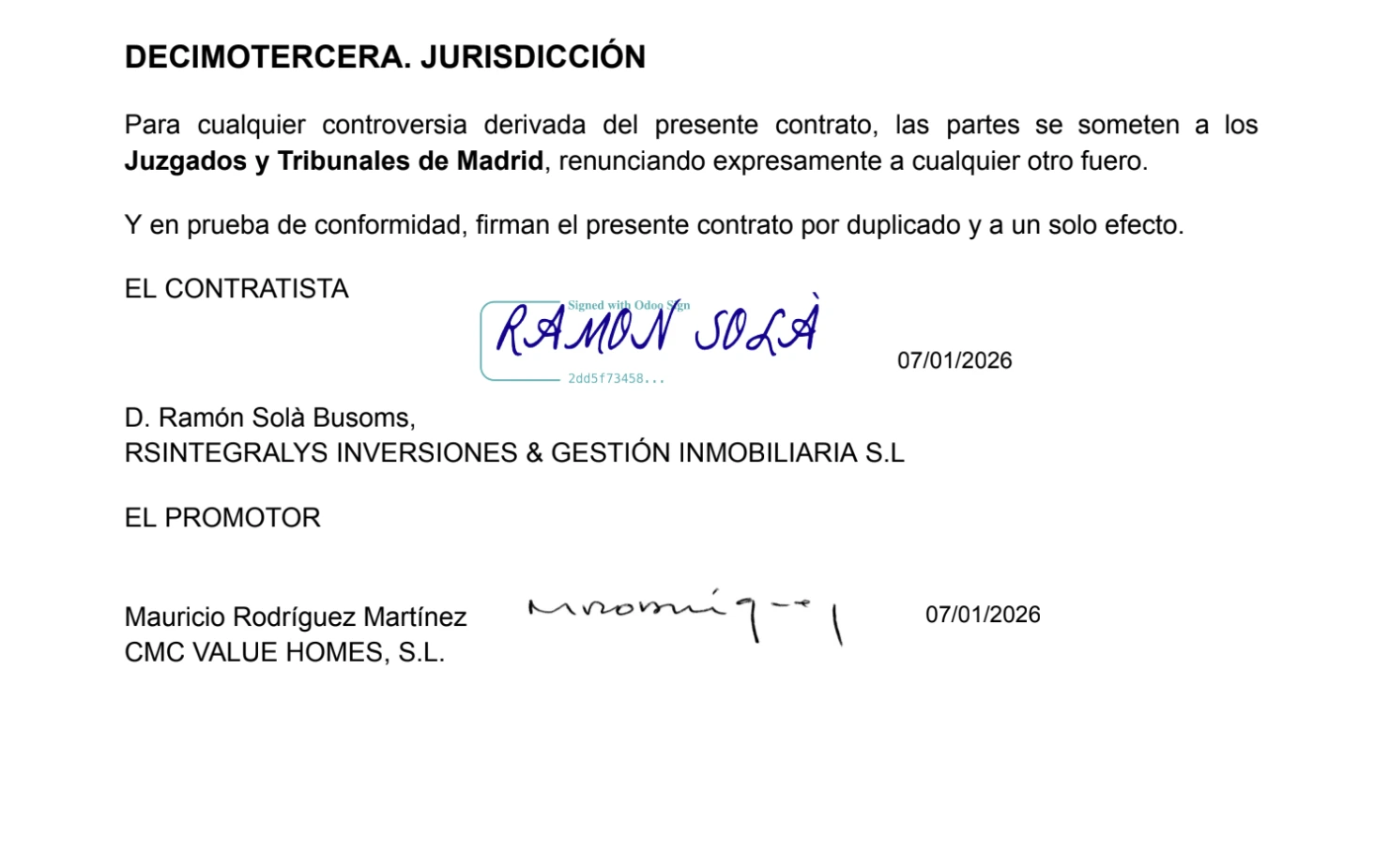Se asigna código para la activación y desactivación de alarma. La fecha de terminación en el contrato es 3.4.2025 establecida con 12 semanas.