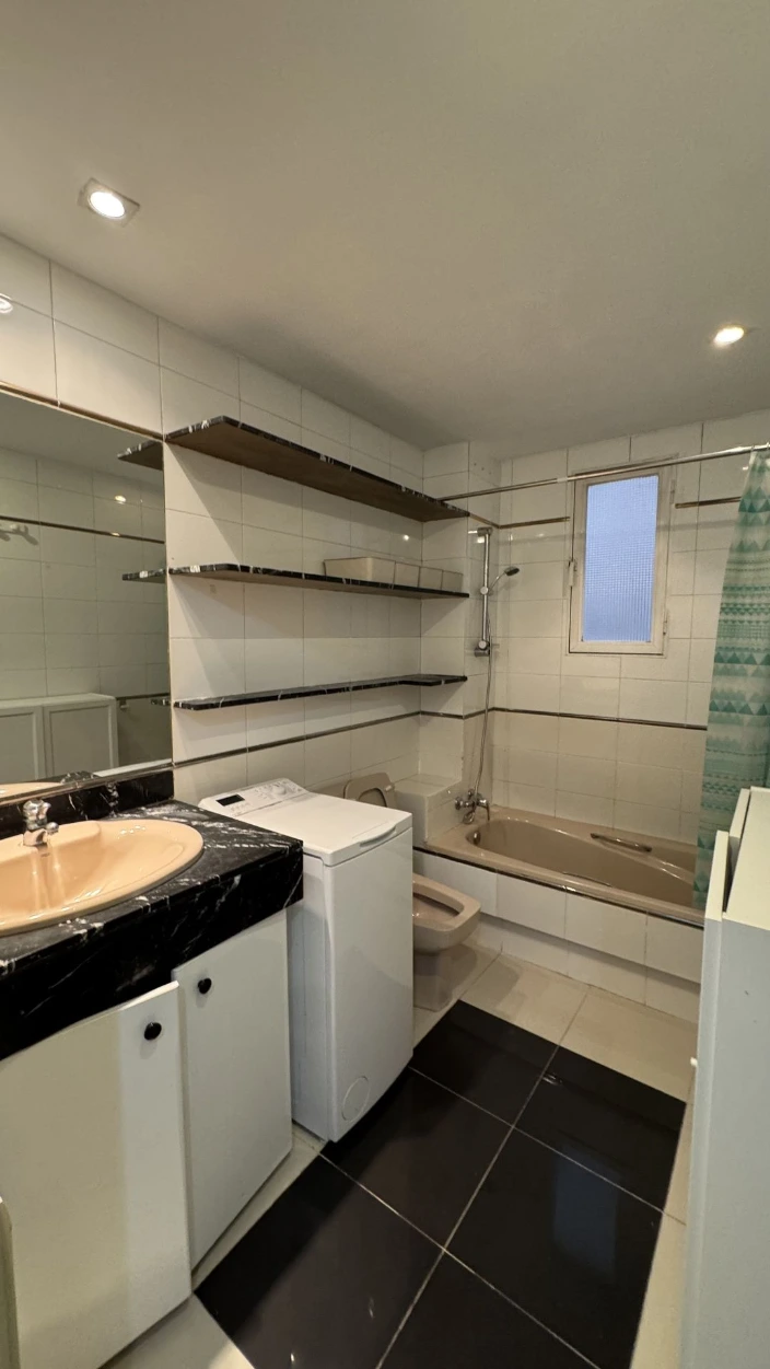La idea es que quede oculta en un pequeño mueble destinado a la televisión, que se encuentra en la pared del baño.