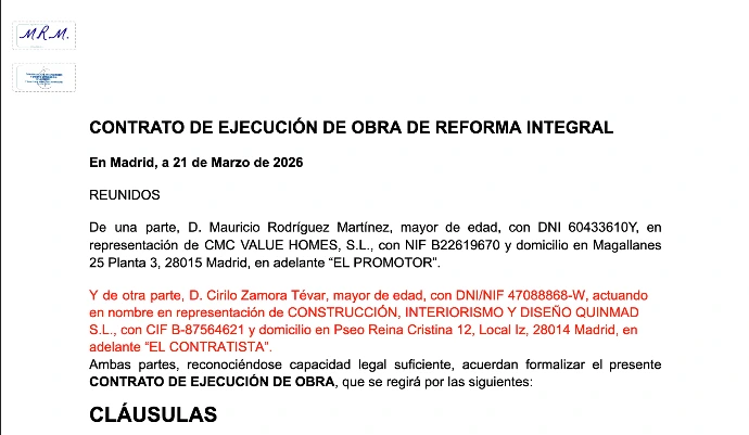 Se negocio el contrato y una reforma en 8 semanas con primera semana el 30.3.
